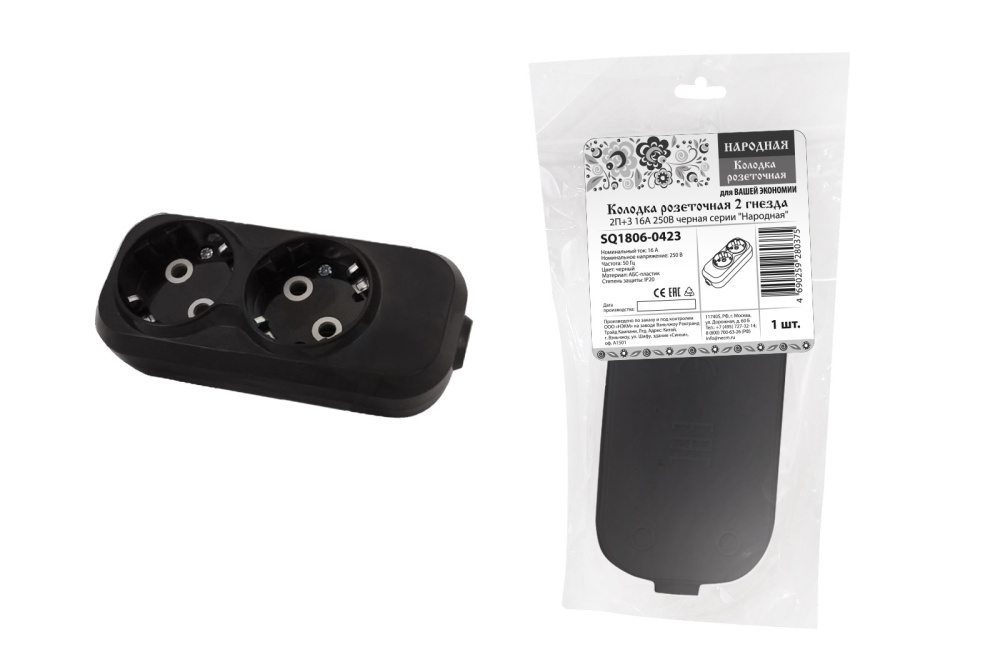 Колодка 2 гн с/з черная "Народная"TDM /10/100