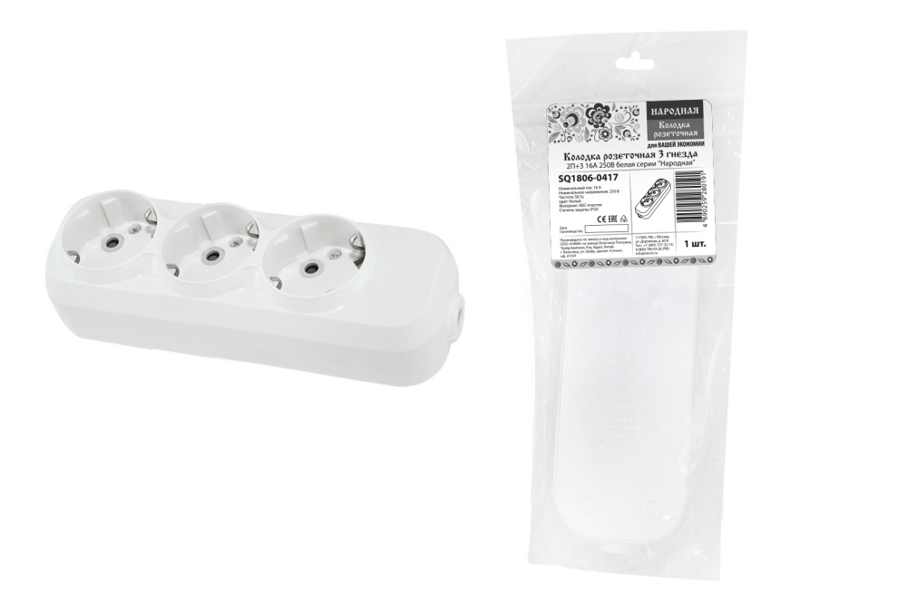 Колодка 3 гн с/з белая "Народная" TDM /16/160
