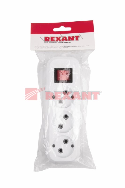 Колодка 3гн б/з IP20 белая с выключателем REXANT