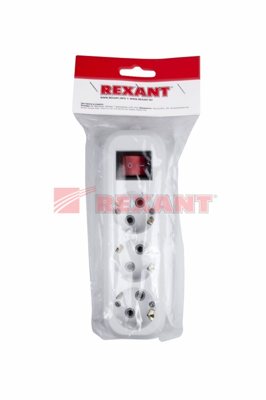 Колодка 3гн с/з IP20 белая с выключателем REXANT