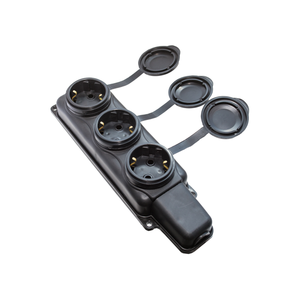 Колодка (розеточный блок) 3 места 16А резина сплошная/цельная черный БЕЗ КАБЕЛЯ IP44 с крышками PLEX