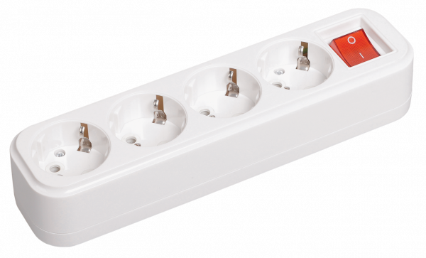 Колодка (розеточный блок) 4 места 16А пластик белый БЕЗ КАБЕЛЯ IP20 с выключателем IEK (ИЭК) Classic