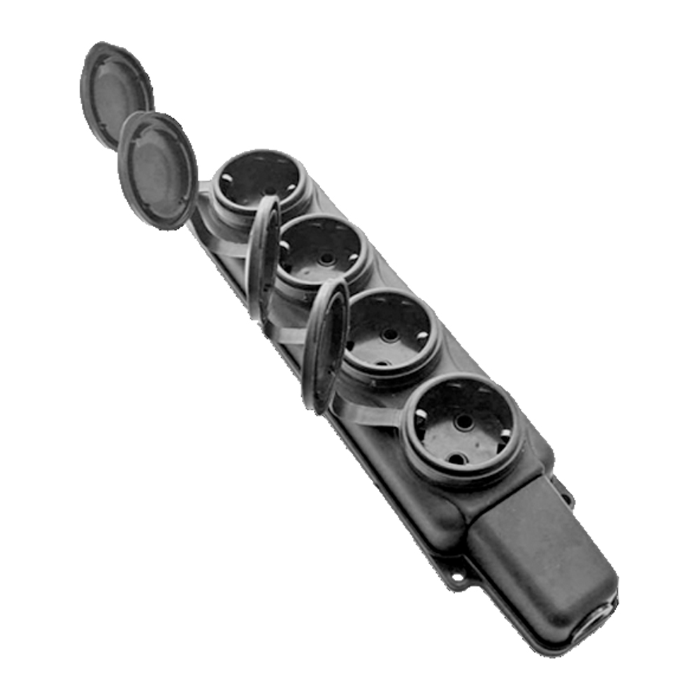 Колодка (розеточный блок) 4 места 16А резина сплошная/цельная черный БЕЗ КАБЕЛЯ IP44 с крышками /