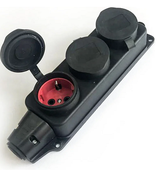 Колодка штепсельная 16А каучук IP44 3 гнезда черный КОСМОС