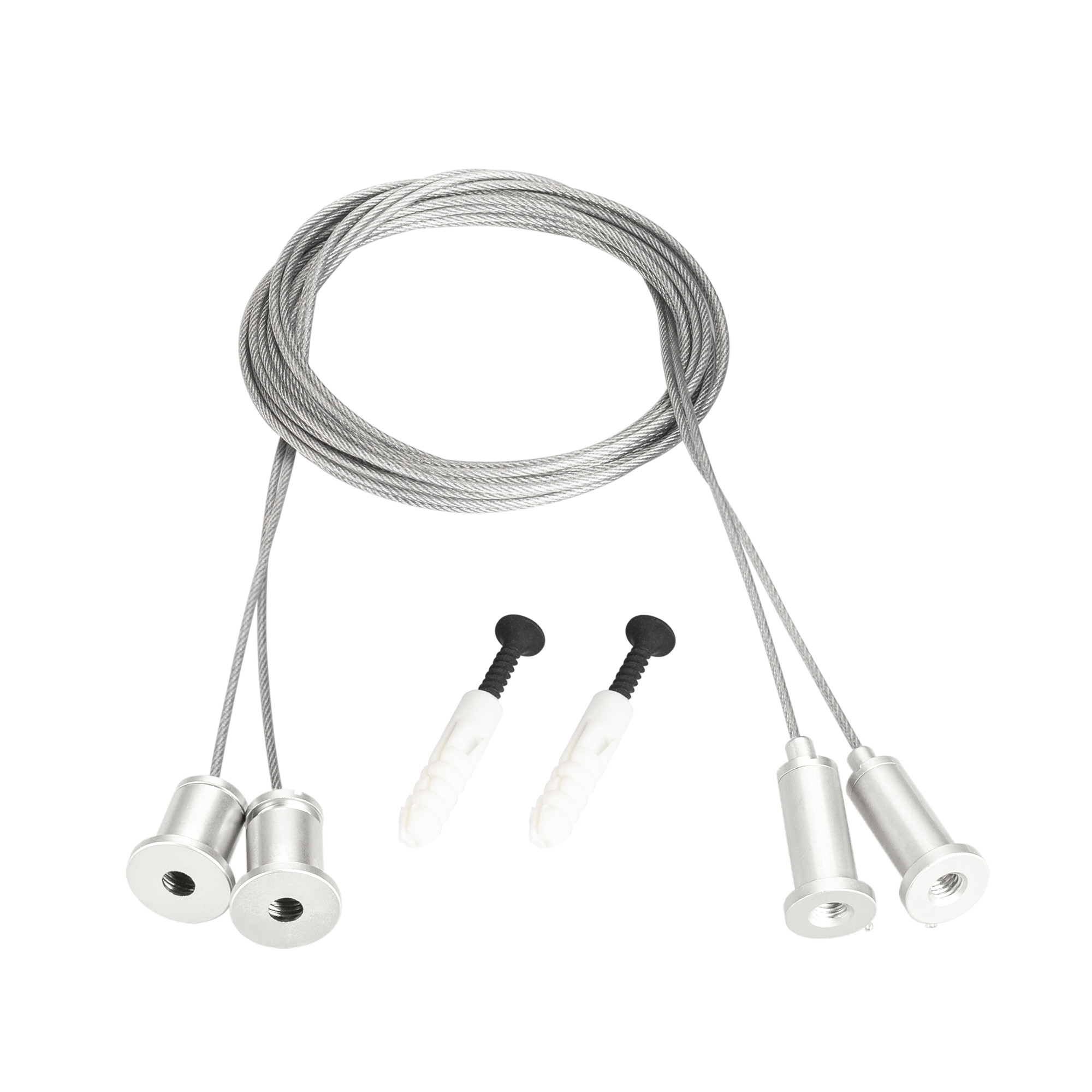 Горизонтальный подвес для герметичной ленты MOONLIGHT-D25. Цвет белый. Длина тросов 2м, длина горизонтальной трубки - 1м. Подходит для любых потолочных поверхностей. Совместим с прозрачными трубками с боковым выводом кабеля (см.совместимые).