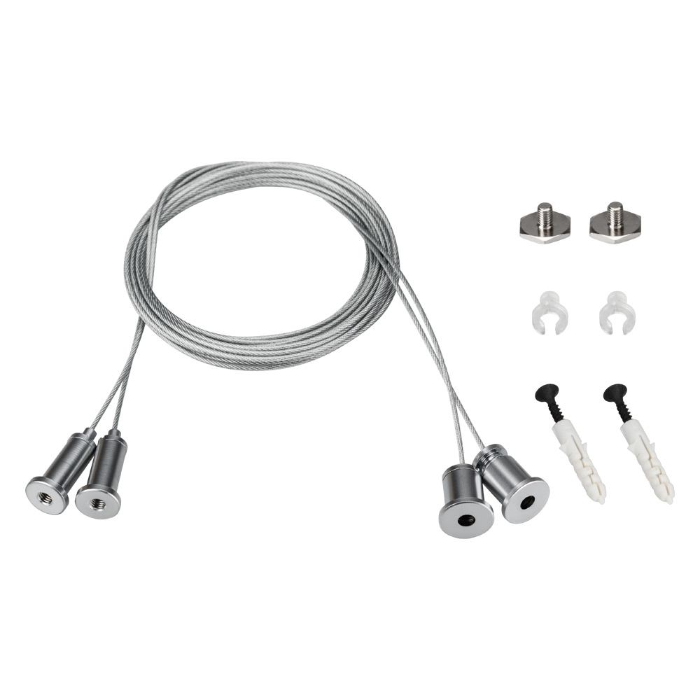 2м подвес для профилей S2-LINE 4067, 5470, 7977, 10570 (для профиля <2 м). В комплекте: трос 2м-2шт, винт с площадкой 15мм-2шт. Максимальная нагрузка на 1 тросик 17,5 кг. Цена за 1 комплект.