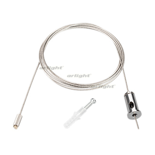 Подвес для профиля ROUND-D20. Цвет - серебристый. В комплекте: трос 2 м - 1 шт., шуруп с дюбелем - 1 шт. Максимальная нагрузка на 1 трос 10 кг. Цена за комплект из одного троса.