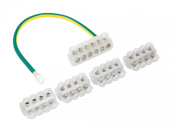 Набор клеммников уличного освещения типа sv-15.5 предназначен для соединения и разветвления 4-х или 6-и жильных кабелей внутри стоек или щитов опор и мачт уличного освещения. Подходит для медных и алюминиевых проводов. При подключении проводов необходимо зачистить концы от изоляции. Контакт с зачищенным проводом обеспечивается прижимными винтами с внутренним шестигранником. На проводящие части нанесена контактная смазка. Корпус клеммника неразборный.В комплект входит:ke-10.1 4 шт., ke-10.3. 1 шт., заземляющий проводник 1 шт.