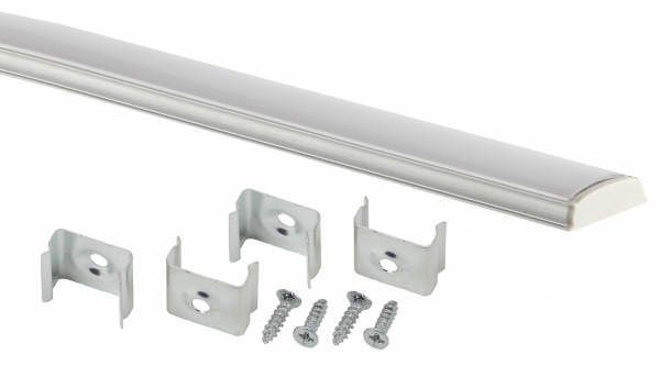 Комплект гибкого накладного алюминиевого профиля предназначен для установки светодиодных лент с шириной подложки до 10 мм. За счёт отведения тепла увеличивает срок службы светодиодной ленты. Покрытие из порошковой краски обеспечивает устойчивость к воздействиям окружающей среды. Эстетично смотрится в интерьере, обеспечивает механическую защиту. В комплекте гибкий накладной алюминиевый профиль CAB292 15х6,4 мм 2 м, белый матовый экран из поликарбоната 2 м, 4 крепления и 2 заглушки.