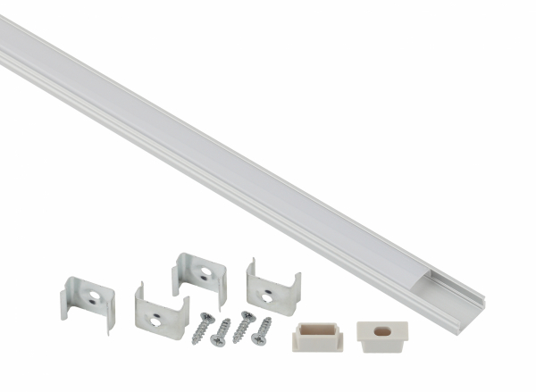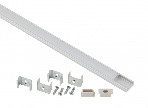 Комплект накладного алюминиевого профиля предназначен для установки светодиодных лент с шириной подложки до 10 мм. За счёт отведения тепла увеличивает срок службы светодиодной ленты. Анодированное покрытие обеспечивает устоичивость к воздействиям окружающей среды и легко окрашивается. Эстетично смотрится в интерьере, обеспечивает механическую защиту. В комплекте накладной алюминиевый профиль САВ262 15х6 мм, 2 м, белый матовый экран из поликарбоната 2 м, 4 крепления и 2 заглушки.