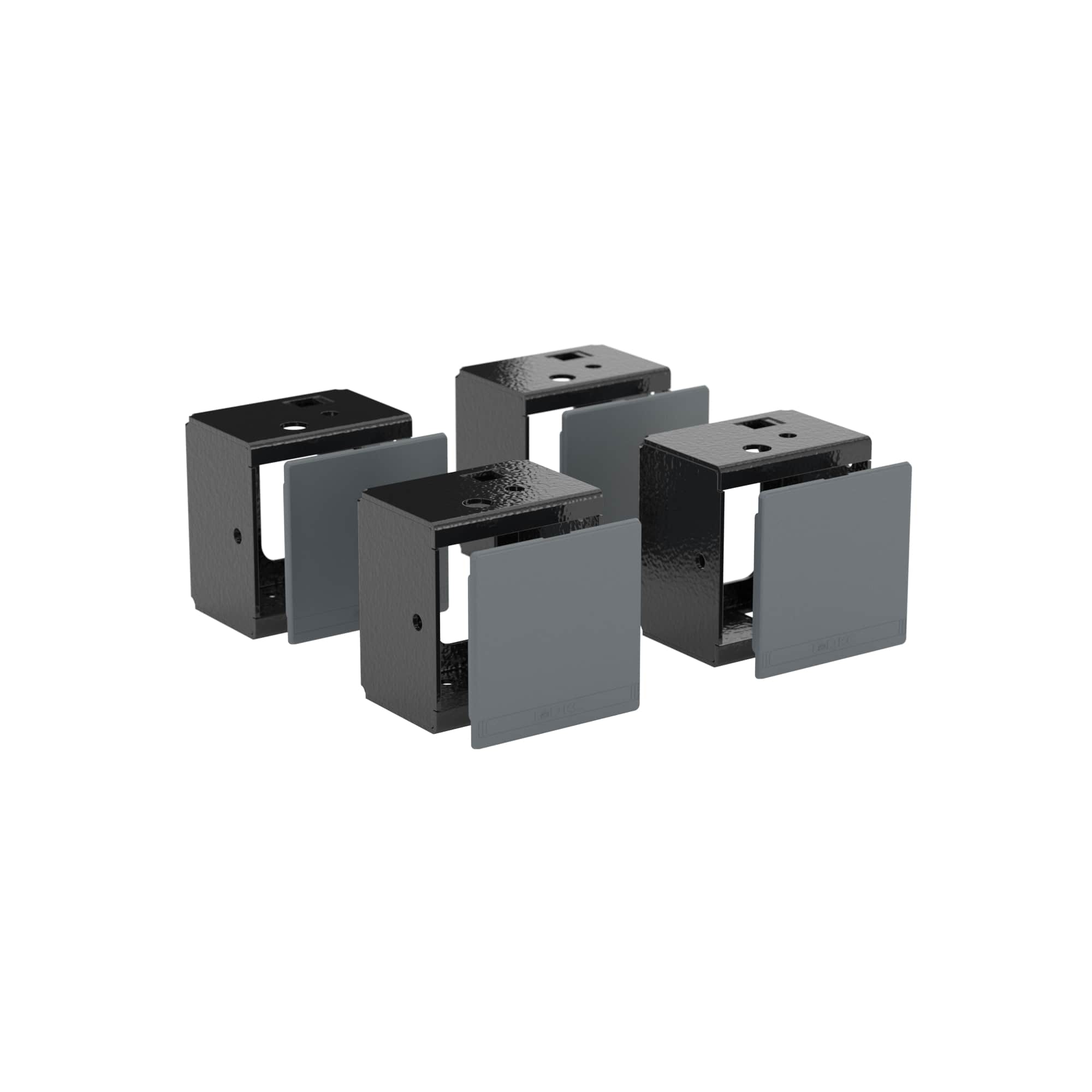 Цоколь к корпусу заказывается отдельным кодом. Он состоит из фланцев и угловых элементов. Фланцы универсальны - они могут устанавливаться как по ширине, так и по глубине шкафа. Цельносварные угловые элементы изготавливаются из оцинкованной стали толщиной 2,5 мм. Цоколь имеет порошковое покрытие RAL9005. Высота: 100 мм