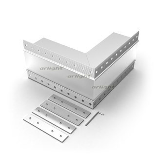 Угол в сборе, для профиля SL-LINIA55-FANTOM. Свечение наружу. В комплекте угол с экраном, соединители, винты, шестигранный ключ.