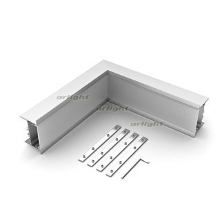 Угол в сборе, для профиля SL-LINIA65-F. Свечение внутрь. В комплекте угол с экраном, соединители, винты, шестигранный ключ.