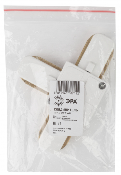 Коннектор T-образной формы для однофазного шинопровода белый ЭРА TR7-C 2W T WH 1/100