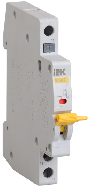 Контакт состояния КС47 и контакт состояния (аварийный) КСВ47 служат для получения информации о состоянии автоматических выключателей ВА47-29 и ВА47-100 в системах автоматизации технологических процессов или защиты конкретных объектов.КС47 выполняет функцию контакта состояния автоматического выключателя: включен – выключен. Переключение контактов КС47 происходит, даже если рукоятка управления выключателя удерживается во взведенном положении.
