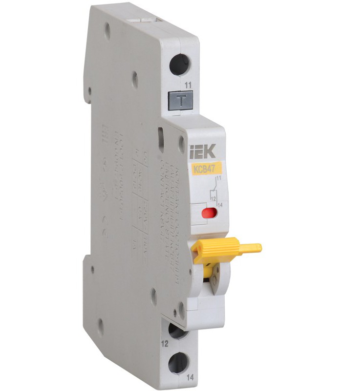 Контакт состояния КС47 и контакт состояния (аварийный) КСВ47 служат для получения информации о состоянии автоматических выключателей ВА47-29 и ВА47-100 в системах автоматизации технологических процессов или защиты конкретных объектов.КС47 выполняет функцию контакта состояния автоматического выключателя: включен – выключен. Переключение контактов КС47 происходит, даже если рукоятка управления выключателя удерживается во взведенном положении.