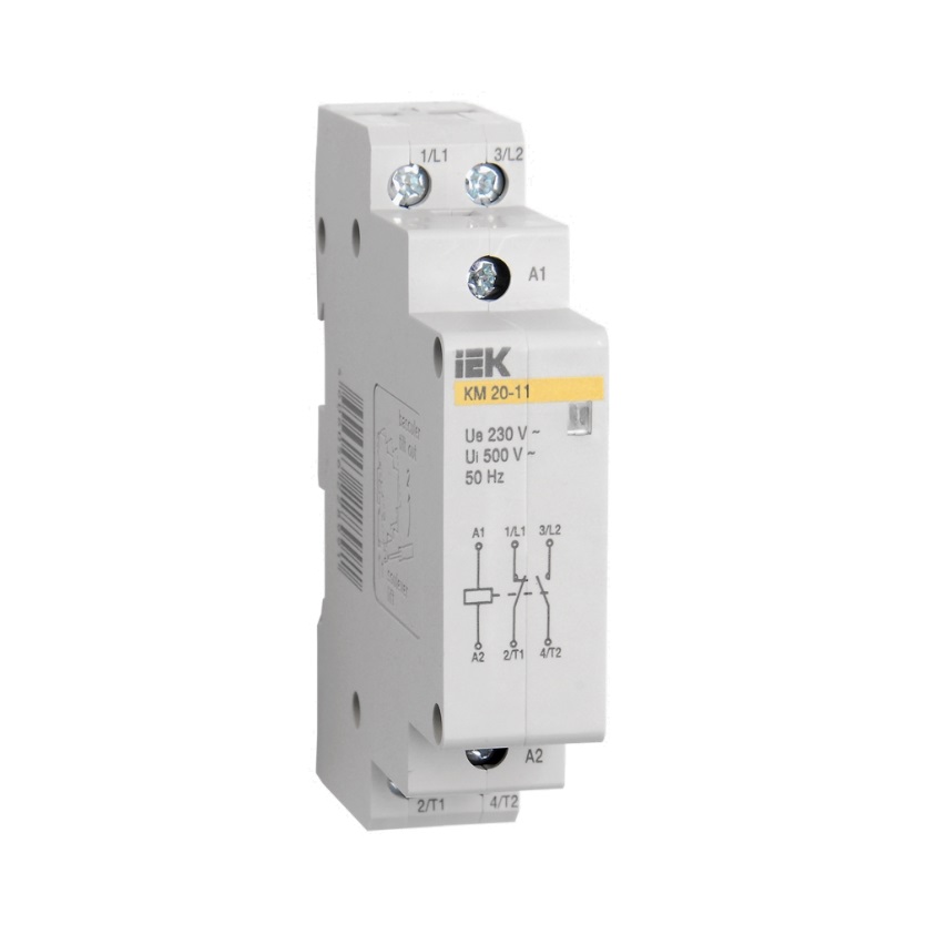 Контакторы модульные типа КМ торговой марки IEK предназначены для применения в сетях переменного тока напряжением до 400 В частоты 50 Гц и служат для коммутации слабоиндуктивных нагрузок с номинальным током до 63 А.