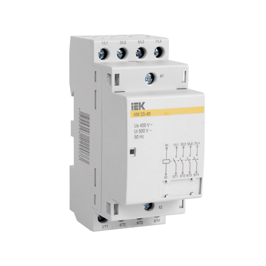 Контакторы модульные типа КМ торговой марки IEK предназначены для применения в сетях переменного тока напряжением до 400 В частоты 50 Гц и служат для коммутации слабоиндуктивных нагрузок с номинальным током до 63 А.Используются для автоматизации и управления различных технологических процессов, в том числе в системах освещения, кондиционирования, вентиляции и т.д.