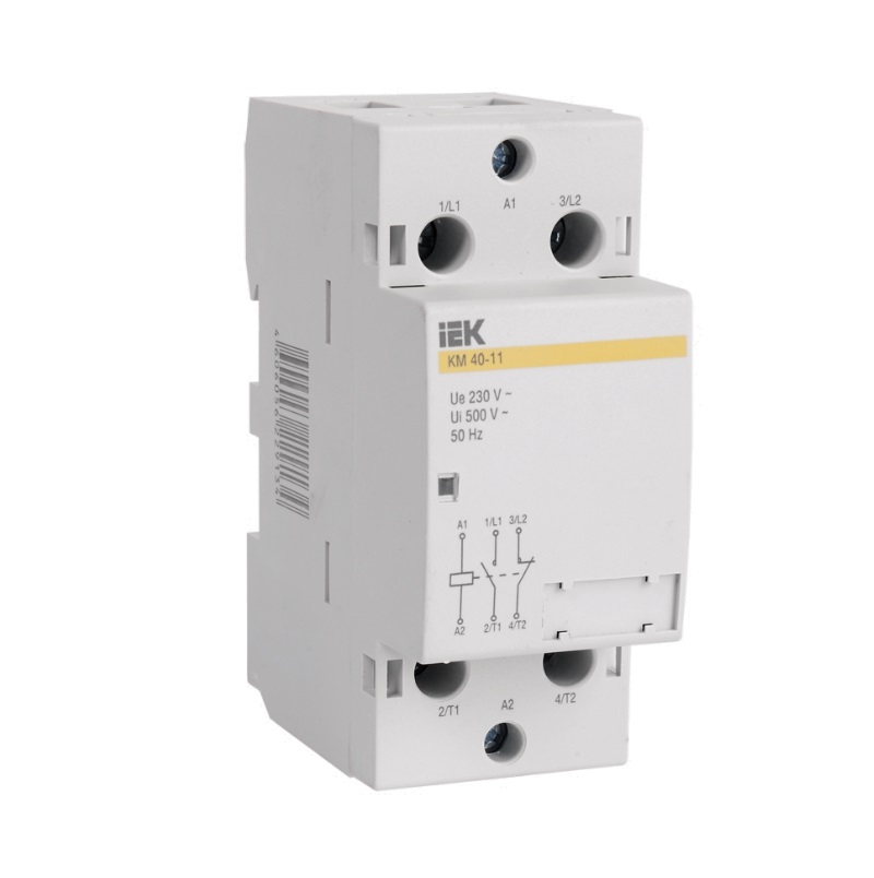 Контакторы модульные типа КМ торговой марки IEK предназначены для применения в сетях переменного тока напряжением до 400 В частоты 50 Гц и служат для коммутации слабоиндуктивных нагрузок с номинальным током до 63 А.Используются для автоматизации и управления различных технологических процессов, в том числе в системах освещения, кондиционирования, вентиляции и т.д.
