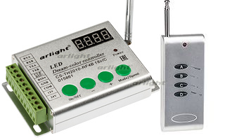 Контроллер для лент RGB «Бегущий огонь» и управляемых модулей. Возможна синхронизация в режиме Master-Slave до 64 контроллеров. В системе один из контроллеров выполняет функцию Master, остальные Slave. Протокол SPI, напряжение 12–24 В, 1024-2048 пикселей, 129 встроенных программ, управление RF ПДУ, размер 170×70×25 мм. Список поддерживаемых микросхем см. в Таблице микросхем.