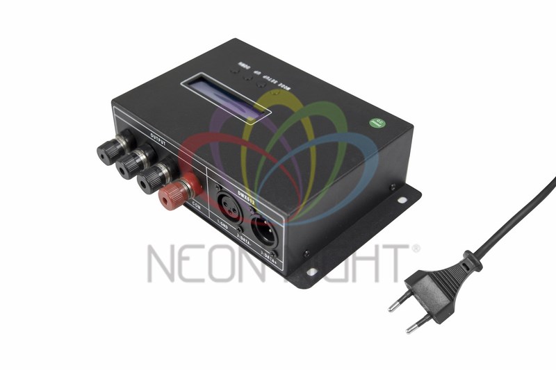 Контроллер для Гибкого Неона мультиколор. Контроллер позволяет изменять цвет по всей длине гибкого неона, имеет 10 режимов и 10 вариантов скорости работы каждого из режимов.Контроллер имеет возможность управления по DMX512.