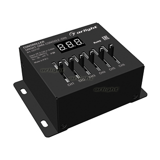 Консольный DMX512 контроллер. Питание DC5-12V либо 3хААА батарейки, выход цифровой сигнал DMX512, 6 каналов управления, терминальные клеммы, XLR3 разъем, цифровой дисплей. Габариты 92х65х38 мм. Корпус - метал. Управляется слайдерными ползунками.