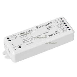 Миниатюрный универсальный 4-х канальный контроллер для светодиодной DIM/MIX/RGB/RGBW лент и модулей (ШИМ). Сихронизация с аналогичными контроллерами до 15 метров, общая длина системы до 100 метров. Питание/рабочее напряжение 12-24VDC, максимальный ток 3A на канал, 4 канала, максимальная мощность 144-288W. Винтовые клеммы. Корпус - PVC. Габариты 114x38x20 мм. Управляется пультами и панелями серии SMART (поставляются отдельно).