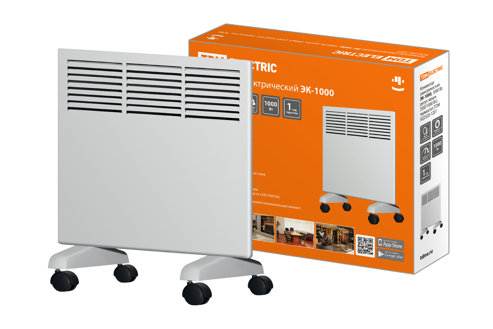 Конвектор электрический ЭК-1000, 1000 Вт, регул. мощн. (500/1000 Вт), термостат, TDM