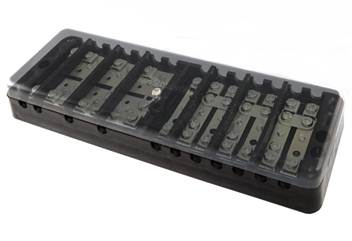 Применение:Шкафы различного назначения, щиты и сборки, укомплектованные трехфазными счетчиками электрической энергии.Согласно главе 1.5, п.15.23 ПУЭ 7 издания, цепи учета электрической энергии необходимо выводить на специальные зажимы или испытательные коробки (клеммники). Материалы:Контактная группа изготовлена из оцинкованной стали, что позволяет применять как медные, так и алюминиевые проводники.Корпус изготовлен из карболита материала, стойкого к высоким (до 300), температурам, обладающего высокой механической и коррозийной устойчивостью, отличными электроизо-ляционными свойствами (диэлектрическая постоянная от 5.6 до 8.85), не подверженного воздействию агрессивных сред.Винты изготовлены из оцинкованной стали.Назначение:Подключение трехфазных индукционных и электронных счетчиков, закорачивание (шунтирование) вторичных цепей измерительных трансформаторов тока, отключение токовых цепей и цепей напряжения в каждой фазе счетчиков при их замене, включение образцового счетчика для проверки без отключения нагрузки потребления. Конструкция:Конструктивно устройство состоит из:основания с группами контактов (зажимов), к которым подключаются цепи напряжения (0, A, B, C) и тока (1 7).защитной крышки, фиксируемой винтом, с возможностьюопломбировки. 0: