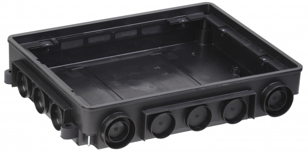Коробка напольная под лючок C-Line 24. Используется с лючком C-Line 12 и C-Line 24 (cl-ln-12 и cl-ln-24). Предназначена для монолитных бетонных полов, ввод кабеля с помощью электромонтажных труб и/или металлического лотка. Предназначен для бетонного слоя 80 - 95 мм. Требуемая высота коробки устанавливается посредством увеличения высоты внутреннего вкладыша с помощью шурупов по углам коробки. В комплекте идет укрывающая пластина, защищающая коробку от попадания бетона при заливке.