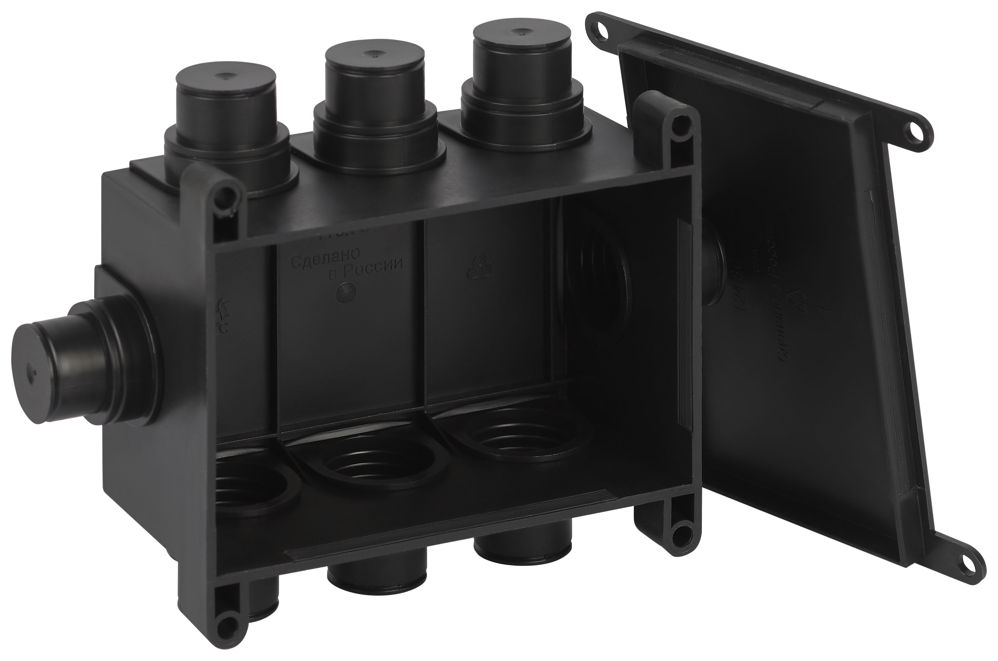 Коробка распаячная ЭРА KRM-118-76-60 черная 118х76х60мм для монолитного строительства 8 входов IP44