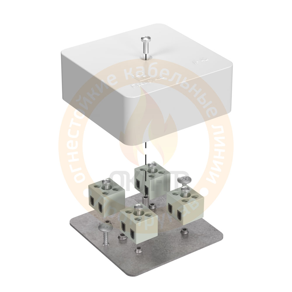 Коробки огнестойкие применяются при прокладке систем противопожарной безопасности по стенам, потолкам зданий и сооружений. Огнестойкие коробки применяются для механической защиты мест соединения проводов и кабелей, а так же для защиты от проникновения пыли, влаги и посторонних предметов. Коробки изготовлены из тепло- и огнестойких изоляционных материалов в соответствии ГОСТ 32126.1, подтвержденным испытанием методом раскалённой проволоки при температуре 650°С. Огнестойкость достигается наличием металлической пластины, керамических клемм и метизов, которые долго сохраняют свой функционал при возникновении пожара.