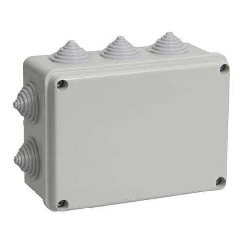 Монтажные коробки для открытого монтажа предназначены для разветвления проводов и кабелей, также для скрытия и дополнительной защиты мест коммутации. Используются как часть системы электрической канализации, состоящей из жестких и гофрированных труб. Коробки с повышенной степенью защиты могут быть использованы на открытом воздухе, а также во влажных и пыльных помещениях. Подходят для прямого монтажа. Материал изготовления: полистирол. Материал коробок является безгалогенным («HF» — halogen-free). Цвет: серый. Степень защиты: IP55. Температура эксплуатации: -25...+40. Количество вводов: 10 - D=25мм. Размер: 150х110х70мм.