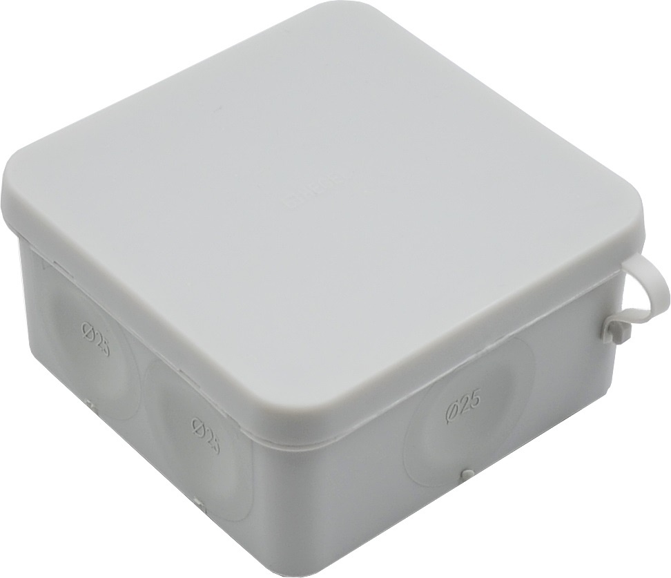 Коробка распределительная открытого монтажа, размер 100х100х50, двухкомпонентная, атмосферостойкая, IP66, цвет серый