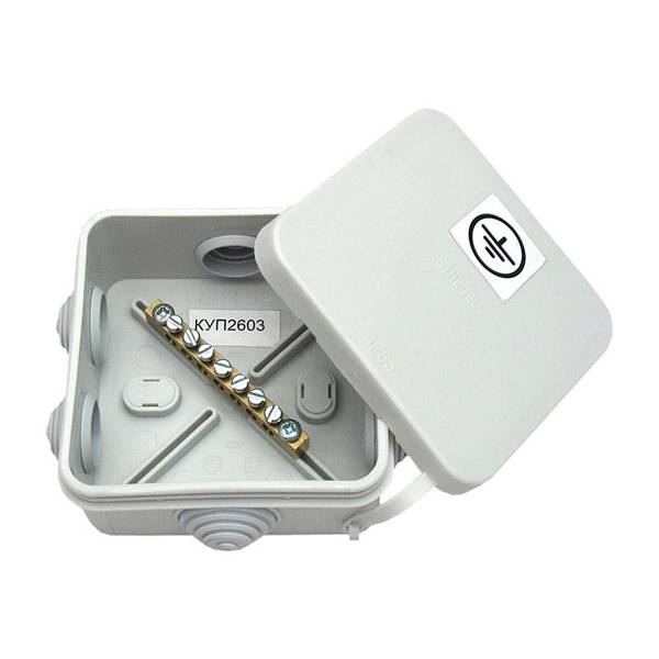 типоразмера каждого. Каждая коробка имеет на крышке знак «Заземление». Номинальный ток шины – 63 А, сечение присоединяемых проводников – до 16 мм2.