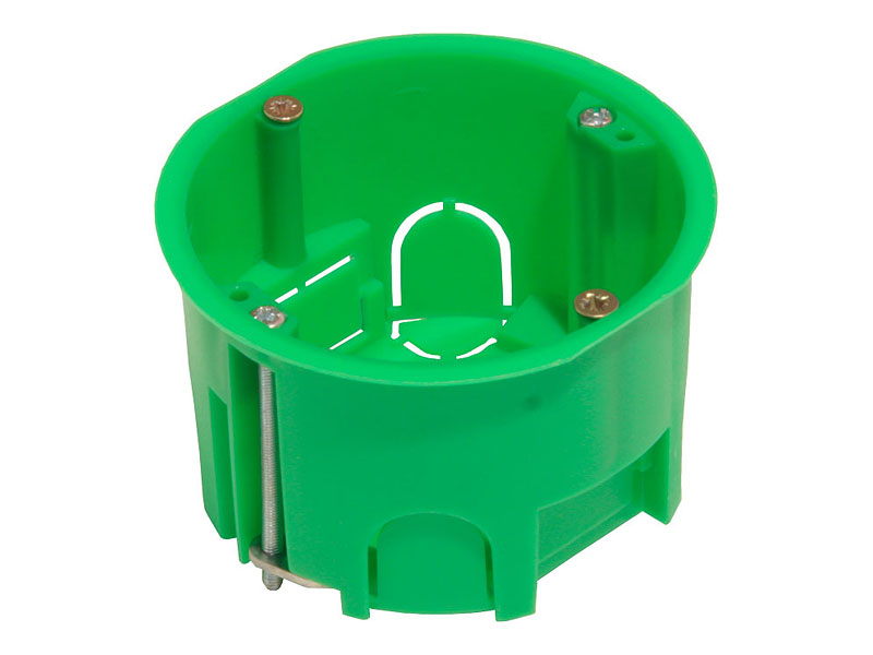 Установочные коробки КУ позволяют осуществлять монтаж электрических розеток, выключателей, диммеров и другихэлектроустановочных изделий в полые стены и перегородки. Все установочные коробки данной серии соединяются между собой в блоки, для установки рядом вертикально или горизонтально. Соединение осуществляется при помощи кабельных переходников ПК5201 или ПК5202 и может содержать несколько механизмов в блоке (межцентровое расстояние 71 мм). Степень защиты – IP20. Напряжение – 400 В. Материал – полипропилен с антипиреном, имеющий огнестойкость 850 °С.