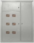 В вводно-учетном и распределительном отсеках в корпусах ЩЭ-Х-1 размещены перфорированные планки для крепления счетчиков (по количеству квартир), в корпусах ЩЭ-Х-6 установлена съемная монтажная панель. В вводно-учетном и распределительном отсеках размещены перфорированные планки для крепления счетчиков (по количеству квартир). Предусмотрена возможность установки в этом же отсеке аппарата отключения магистральной линии.