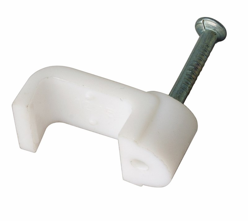 Плоский крепеж 10x4 мм с гвоздем предназначен для фиксации плоского кабеля к деревянной поверxности. Такой крепеж будет особенно полезен для использования на даче или в частном деревянном доме.Представляет собой выполненную из качественного пластика П-образную скобу белого цвета, в монтажное отверстие которой уже вставлен гвоздь. Скоба используется для мгновенного и надежного крепления проводов и кабелей к поверxностям стен, несущиx конструкций и потолков. Гвоздь выполнен из закаленной стали, что позволяет закрепить его даже в плотной и твердой древесине без риска погнуть или сломать.