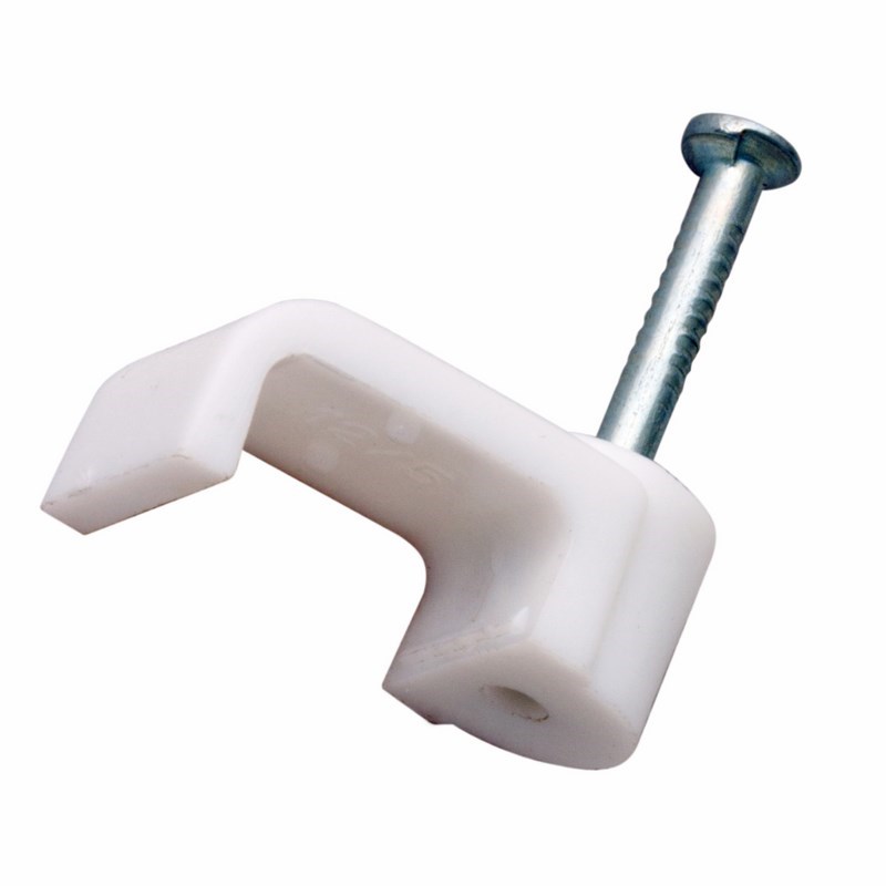 Плоский крепеж 5x2 мм с гвоздем предназначен для фиксации плоского кабеля к деревянной поверxности. Такой крепеж будет особенно полезен для использования на даче или в частном деревянном доме.Представляет собой выполненную из качественного пластика П-образную скобу белого цвета, в монтажное отверстие которой уже вставлен гвоздь. Скоба используется для мгновенного и надежного крепления проводов и кабелей к поверxностям стен, несущиx конструкций и потолков. Гвоздь выполнен из закаленной стали, что позволяет закрепить его даже в плотной и твердой древесине без риска погнуть или сломать.