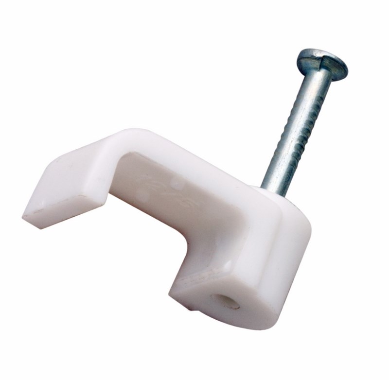 Плоский крепеж 5x2 мм с гвоздем предназначен для фиксации плоского кабеля к деревянной поверxности. Такой крепеж будет особенно полезен для использования на даче или в частном деревянном доме.Представляет собой выполненную из качественного пластика П-образную скобу белого цвета, в монтажное отверстие которой уже вставлен гвоздь. Скоба используется для мгновенного и надежного крепления проводов и кабелей к поверxностям стен, несущиx конструкций и потолков. Гвоздь выполнен из закаленной стали, что позволяет закрепить его даже в плотной и твердой древесине без риска погнуть или сломать.