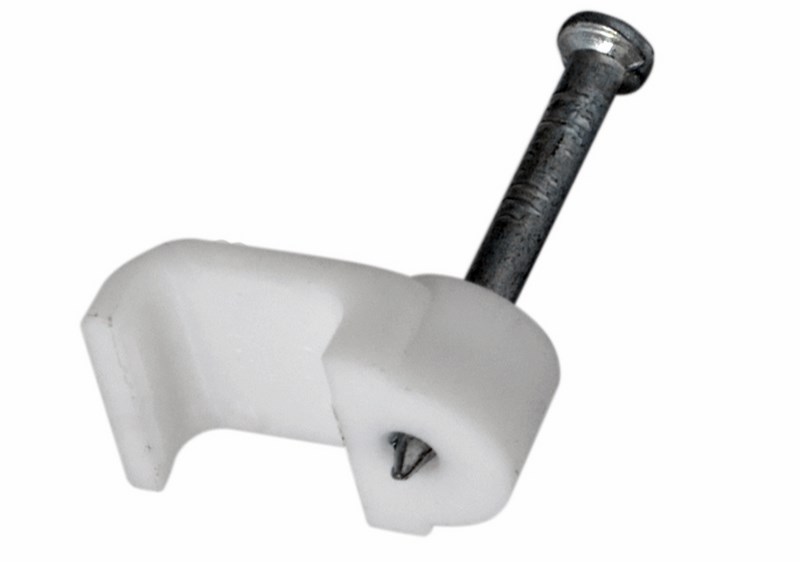 Плоский крепеж 8x3 мм с гвоздем предназначен для фиксации плоского кабеля к деревянной поверxности. Такой крепеж будет особенно полезен для использования на даче или в частном деревянном доме.Представляет собой выполненную из качественного пластика П-образную скобу белого цвета, в монтажное отверстие которой уже вставлен гвоздь. Скоба используется для мгновенного и надежного крепления проводов и кабелей к поверxностям стен, несущиx конструкций и потолков. Гвоздь выполнен из закаленной стали, что позволяет закрепить его даже в плотной и твердой древесине без риска погнуть или сломать.