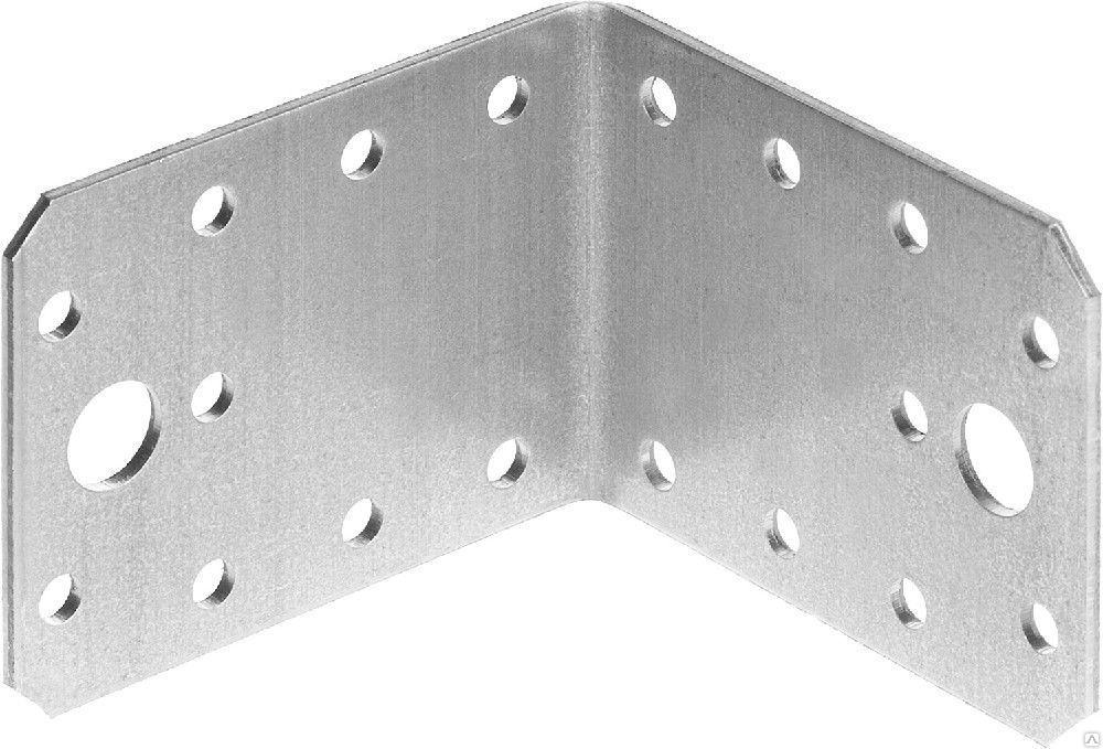 Особенности: способен выдерживать высокие нагрузки, обеспечивает высокую прочность соединения. Благодаря тому, что на уголке имеются отверстия различного диаметра (5 и 12 мм), для монтажа можно использовать саморезы и гвозди. Крепление осуществляется без врезки в материал, специальный инструмент для монтажа не требуется.