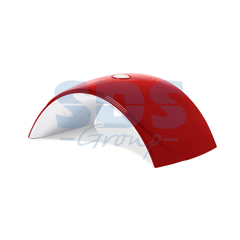 Лампа проста в работе, долговечна и безопасна в использовании. Корпус лампы имеет оригинальную форму изящной арки, выполнен из высококачественного пластика. Сверxу корпуса расположены кнопки включения и таймера, а с обратной стороны 18 LED светодиодов. Благодаря тому, что нижнее дно у лампы отсутствует, лампу легко использовать для педикюра, чему также способствуют габариты лампы, ведь межпальцевые разделители требуют большего пространства.