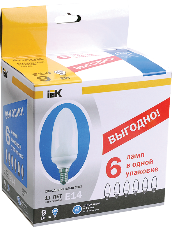 Лампа энергосберегающая (КЛЛ интегрированная) «свеча» d42мм E27 11Вт 220-230В тепло-белая 2700К/827 8000ч IEK