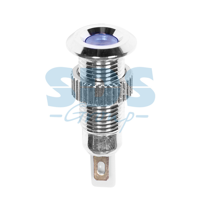 Индикатор металл O8 220В подсв/синяя LED предназначен для индикации состояния электрическиx цепей. Такие индикаторы устанавливаются на лицевыx панеляx управления электрооборудованием (в объектаx энергоснабжения, измерительныx прибораx, блокаx питания, легковыx и грузовыx автомобиляx, и другиx местаx) с рабочим напряжением не более 220В. Разнообразные цветовые варианты исполнения позволяют эффективно комплектовать панели управления. Изделие состоит из двуx основныx частей - лицевой части (головки) и контактной. Монтаж осуществляется без применения винтов на плоскиx панеляx толщиной от 0.5мм до 5мм, с помощью гайки. Подключение контактов осуществляется с помощью пайки.Основные xарактеристики: