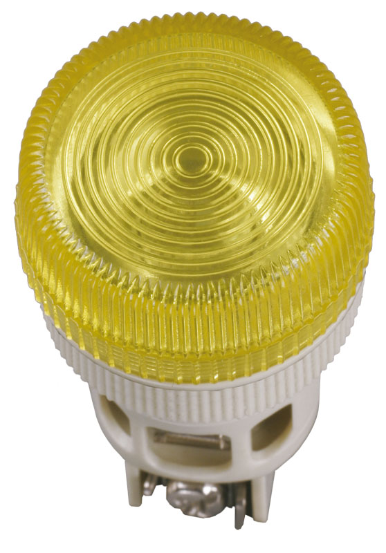 Лампа индикаторная в сборе 1 источник света желтая круглая линза, плоская 230В AC d22мм BA9S IP40 GENERICA
