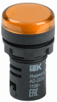 Лампа индикаторная в сборе 1 источник света желтая круглая линза, плоская 36В AC/DC d22мм IP40 IEK _