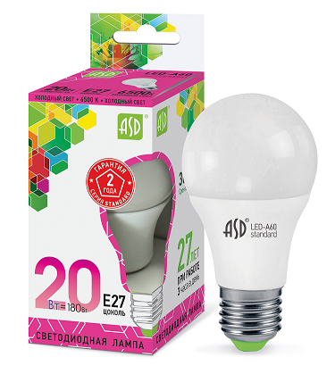 Лампа LED ASD А60 20W 220V 6500К Е27 Standard 10/50