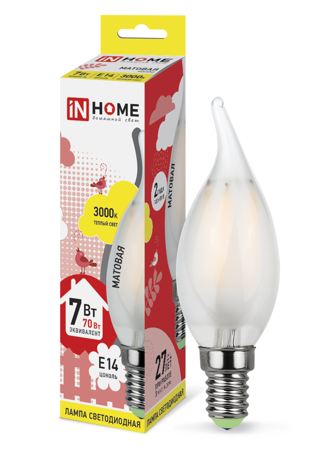 Лампа LED ASD CF 7W 220V 3000К E14 IN HOME 10/50