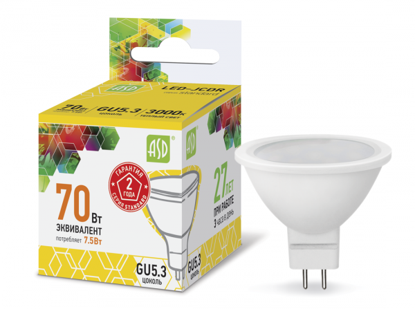 Лампа LED ASD JCDR 7,5W 220V GU5.3 3000К Standard 10/50